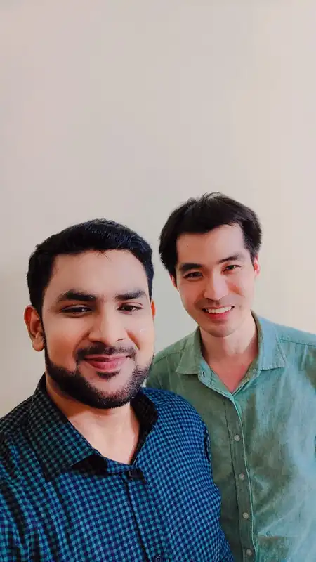 和民宿老闆合影